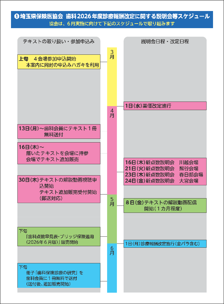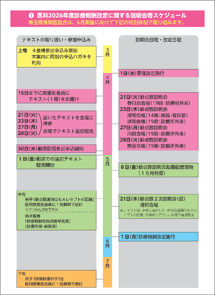 今改定の説明会は郵送でご案内のとおりです。医科と歯科とで開催日程が異なりますので以下をご覧ください。会場参加した場合も動画配信の視聴が可能です。
